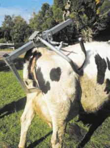 A humane lift and support device for down cattle. The Pelvic Lifter lifts under the pelvis, whilst the hip support positions the device and assists during lifting. It is simple and easy to apply. The Pelvic Lifter has been developed by a veterinarian and is a great product for downed cows.