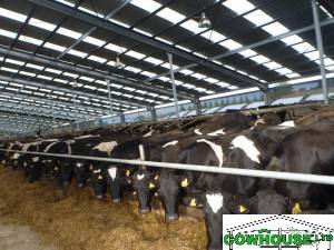 This project was an integration of 2 farms into one, with use of a Cowhouse hybrid facility for 1100 cows (Cowhouse for 750 cows). The cows rotate through the facility in 3 herds; high producing, winter milking and lower producing cows.