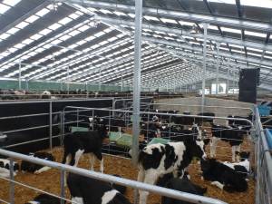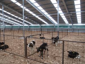 This facility was designed to rear 1000 calves all indoors. With a collapsible gate system, the facility can be completely cleaned. Robotic feeding of milk and pellets for maximum growth of the replacement stock was seen as vital to grow the calves to top young stock and future cows.