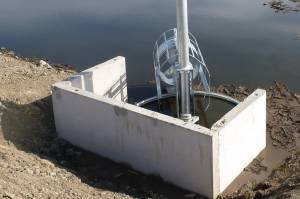 3 times 22 Kw Eisele High Performance Stirrers strategically placed and with ability to change level height of stirring so all levels of the pond can be stirred and mixed properly