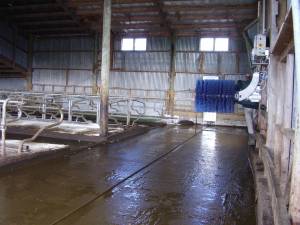 Instead of washing the yard, the most hated end-of-milking chore by far, it is scraped automatically.