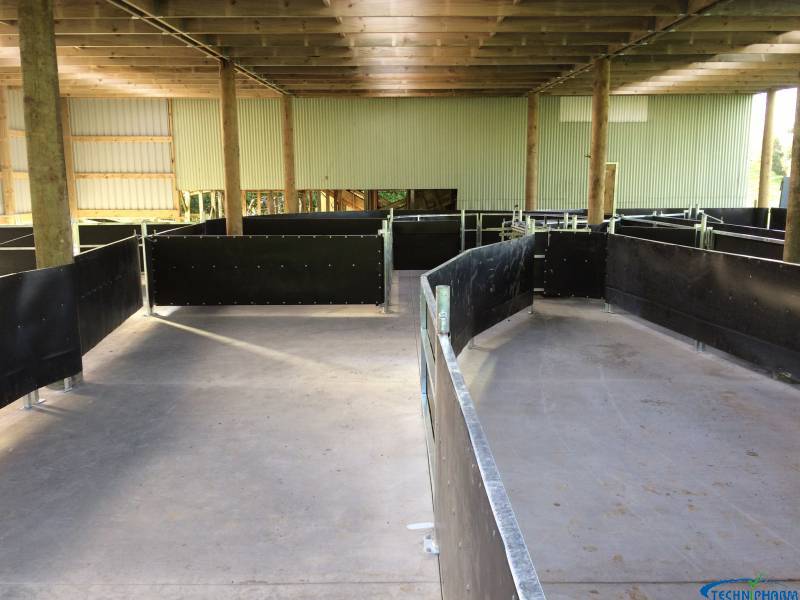 The feeders are set up on a small garden shed in the centre of a pizza style pen configuration, each pen holds approx 20-30 calves which are supplied by 2 feed stations. Each Robot can supply 8 Feed stations.