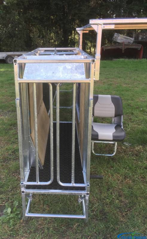 Mobile scanning crate and weather shelter, anti elbow protection bar, ergonomic seat