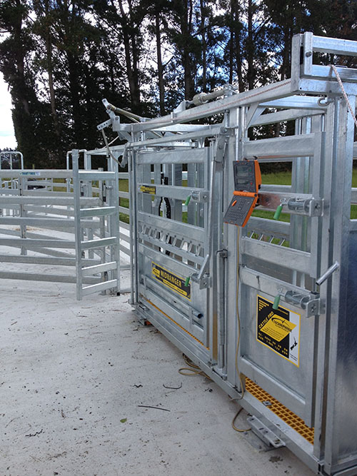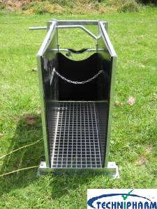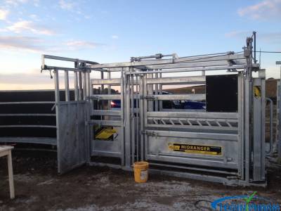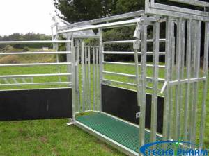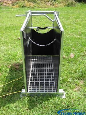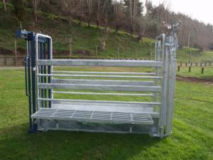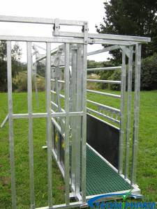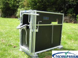 When you just want a weighcrate TechniPharm has just the solution. The base is a fully hotdipped polybelted V shape crate/handler unit (we use these for our Dairy Teatspray units which get an extremely hard use and many thousands of cows pounding over them every day). This crate can be equipped with either open or closed double acting slide gates, or choose a Midranger Junior Headbail and rear operation for one position one person use, add a set of extended 2000 KG or 3500 KG weigh bars and you are set to go. Add a rubber lined floor for silent operation. These units are made to order from standard components, allow minimal 2-3 weeks from day of order to delivery.