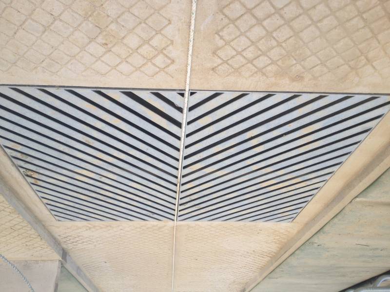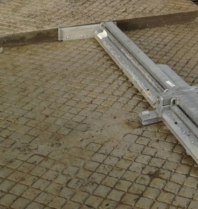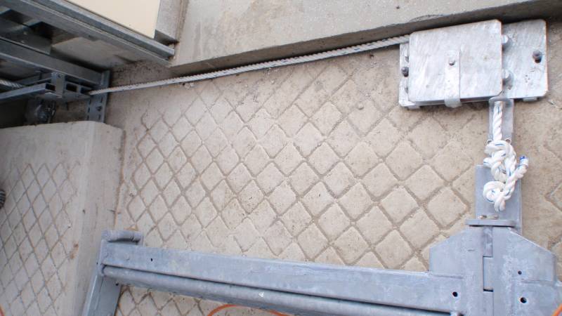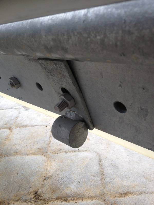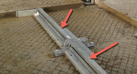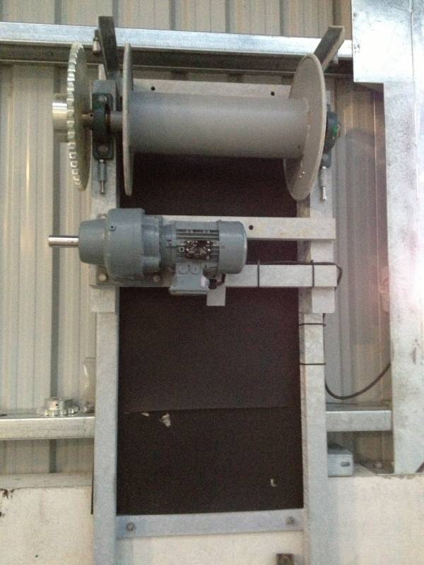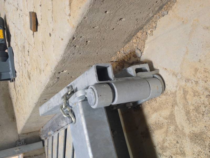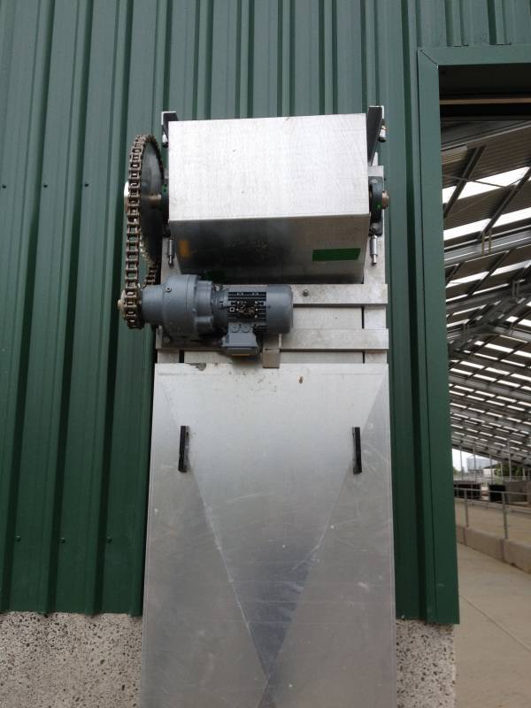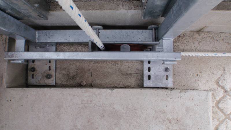 This pulley block is placed either end of the scraper lane mounted on the concrete