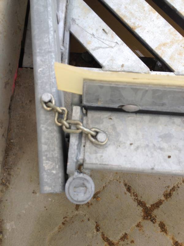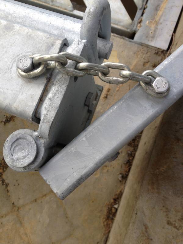The chain is linking the main frame and wing so the wing does not swing the wrong way when the scraper gets lifted due to say a clump of grass/silage.