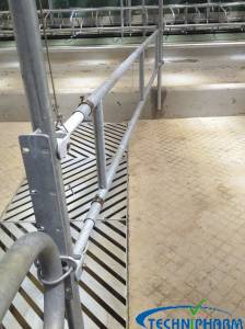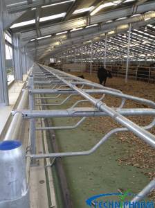 There are many options and theories for stall frames, and each design has its benefits and draw backs... its not just a piece of bent steel height, length, width of bay as well as shape of the frame will all have an impact on cow wellbeing. We suggest strongly not to obtain these products without proper and qualified advice. An engineer or builder however capable is not a cow wellbeing expert. At TechniPharm we know all the options and will help you select a stall frame which is suitable for your cows. Lunge space, the manner in which cows lay in the stalls, hygiene, and general comfort are are critical factors to consider. Stall frames are just but one component of a total system. Other critical factors are within the Brisket rail, the Neck rail and Bedding options. The whole system has to work in synchrony. Before we would provide you a stall guidance system , we will engage and do a significant amount of work to establish that it will work for you and your cows. We only recommend and use products from suppliers which have a significant back ground and established performance success. Most successful stall systems in NZ are what is referred to as Frisian Hanging and R Frames. Full height and width adjustment in these systems are ideally suited to NZ conditions. TechniPharm has the largest number of Freestall fit out projects completed in NZ including the Massey Uni Cowhouse