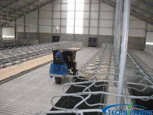 This CleanCow™ automatic bedding cleaner and lime or sawdust spreader will speed up the cleaning of beds significantly. Volume and speed are fully adjustable , bins 600 and 1300 litres (for lime the 600 litre bin is large enough) This robust machine has been selected from a range of options available on the world market. Manufactured in the Netherlands. Several units are already in operation in NZ by the largest Cowhouse operation in Glenavy (SI) Options for NZ Cowhouses with solid floors: There is no need for a a blade to scrape the floor. A blade could be added if for instance the unit is also used to scrape the link races and round about In solid floor housing where scrapers sit in the middle of the housing system the beds are cleaned from each side of the housing system.