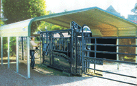 The ideal roof for your cattle handling area. An incredible clever slip-fit connection of strong heavy duty galvanised swaged steel that can be erected within 5 hours and costs less than most other forms of construction. Can be erected on unlevel ground or bolted onto a concrete pad