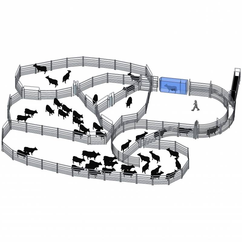 Specific guidance principles of how to get animals to do what we want them to do, without a lot of people and/or yelling and screaming. TechniPharm has spent many years of experimenting, learning and taking advice from other specialists around the globe. A particular note is Temple Grandin from the USA who has made a profound impact and change on all cattle handling systems around the world. The dimensions used are often not in line with efficient use of steel lengths thus you often find Technipharm system being slightly dearer, but that extra investment pays off in more efficient and safer handling. Even 1 minute per animal over 300 animals, 12 times a year adds up to considerable time savings.