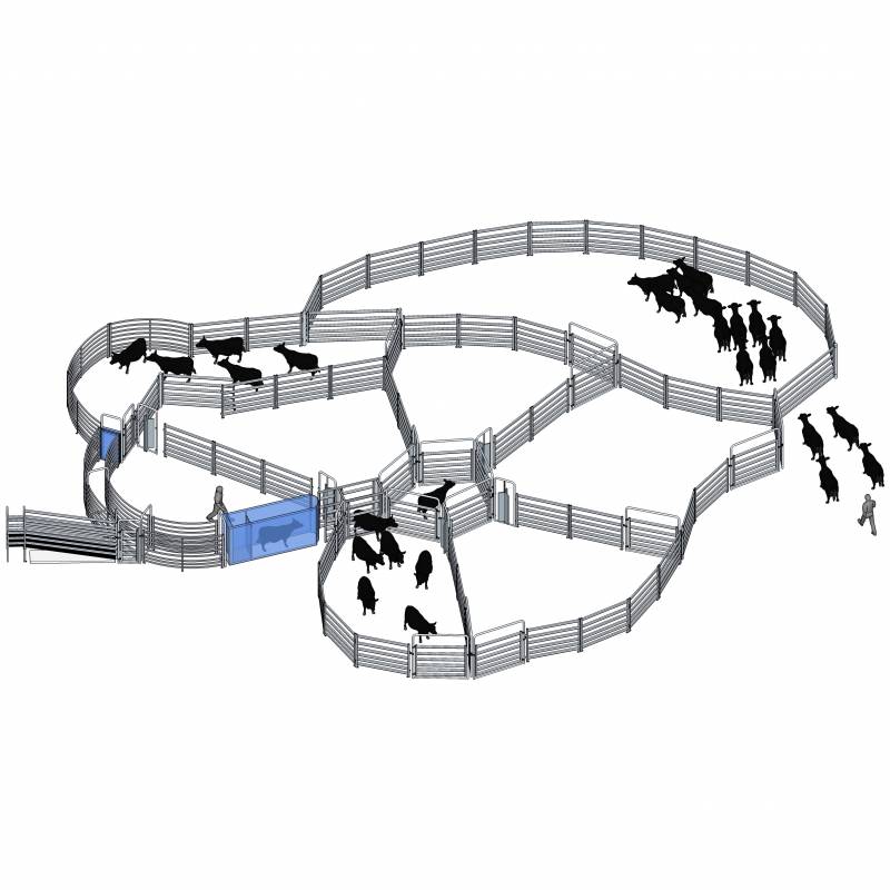 The Infinity Smart Yards ™ series are the next generation of Steel yards designed to give you ultimate flexibility in design, size and relocation options. Infinity Smart Yards™ will create an animal handling system for your farm enhancing safety for staff and reduced stress for stock. With and Infinity Smart Yard™ you will see stock spending more time on pasture and less time in the yards. Infinity Smart Yards ™ will see you facing the future with confidence. If your farm system changes , Infinity Smart Yards™ can be adjusted to accommodate, we offer a free upgrade design service to you to mae that possible. Selling your farm in a few years time means you can list the Infinity Smart Yards ™ as a chattel and thus recover a large proportion if not all of its investment price . Infinity Smart Yards™ provide a value proposition which is second to none, with a high visual bearing impact to guide stock be design and not by force, and many proven animal behaviour design features Infinity Smart Yards™ are you best investment on the farm. The Supreme Infinity is an expandable yard design especially suitable for large mob stock movements
