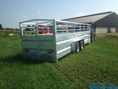 Total Stock Transporter BIG ALL This total stock low bed transporter is ideal for moving stock on farm or between blocks of land. Specifically made for NZ conditions and tractor pulled. Combine with a set of panels and stock can be loaded and loaded anywhere without the need of yards or loading facilities Specifications: Deck : 9m by 2.45m = 22 m2 deck @ 1.2m2 / cow= +/- 18 milking cows ( large cattle) or 25-30 Yearlings . Low lying so loading and unloading does not need a loading ramp, fast loading and unloading , less stress for cows and staff more results. Pull method: Tractor pulled so ideal for inter transit between blocks of land Specifications: 9.00 x 2.45 deck space Tandem axle Tyres/wheel rims to max width max 3.m Hydraulic knee axle Hydraulics braked Tyres 4 of @ 435/50R19.5 Mudguards can be removed LED lights 2 entry doors including lockup gate at back end of trailer 1x lock up bar which can be locked anywhere in trailer Solid aniti skid floor galv floor Total submersed galvanizing Allow 12 weeks from order to delivery