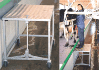 Dairy caddies are a very popular product, safe and steady its the way to move safely in the dairy for tailpainting, AI, herd testing, pregtesting etc. The large Dairy caddy is favoured over the standard or slimline by many vets as it has a slightly larger platform. Note: if your priority is portability check out the extendable dairy caddy™ . Note: place your orders early, seasonal demand always outstrips supply, we do the best we can to keep up but our production team can only do so much. Your order is important to us and we will do the best we can, however we ask to order well before you need the Caddy and if time has sprung upon you allow us some time to get the unit to you. All orders are irreversible once placed! Height of the large Dairy Caddy 850mm. Platform size: 600mm by 800mm Prices do not include GST or Freight/Insurance