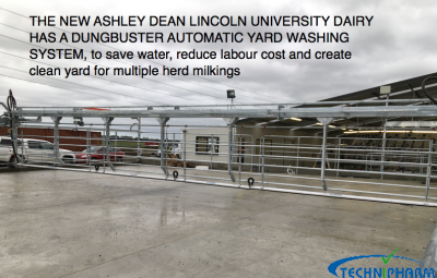 The smart automatic yard washing system Still washing by hand held hose? If you are you are wasting 3 weeks of time and you are spending $10 plus a day on a job which can be fully automated. Dungbuster is the solution, go and have a look at your neighbour and see why he is home so early! Fancy the idea of less effluent? or re-use of Greenwash? One of the byproducts of dairy farming is effluent. Most farmers see this as a nuisance; however in reality its free fertilizer and treating it as such would be a great start to get better results out of it. Like fertilizer wasting it, costs. For starters it would be beneficial to stop producing large volumes of water in the production of milk, why do we need thousands and thousands of litres of water to wash a yard? Basically we just do it because every one does it and we have always done it that way All that water (which you had to pump out of a well or creek) turns into effluent, which you will have to pump (again) out to pasture. When its wet and soils are saturated that water causes you to have to reduce application rates and as such increases the area you apply the effluent to, all of which cost money and soaks up time. There are many water saving features one can install in the dairy, to name one a Dungbuster(r) automatic yard washing system which will reduce water use washing the yard by up to a good 40% if not more. That is right up to 40%, 40% less to pump out of the ground, 40% less washing pump running and 40% less effluent not a bad start, right? On top of that you will achieve electricity savings and time savings (the average yard takes a full 120 hours per year to be washed! 120 hours is 3 weeks labour!!!!! Yes 3 weeks. And now there is a further solution to Greenwash, the Dungbuster Dual Core Greenwash ™ auto yard washing system. Switch between greenwash and clean wash and have a Fonterra MPI compliant green wash system For a meager investment of a few thousand dollars (in most cases less than what it would otherwise cost to wash the yard for one year) you will get less water in your effluent, better application possibilities, electricity savings and huge time savings. we make farming ezy Check it out at www.technipharm.co.nz or call them on 0800 80 90 98